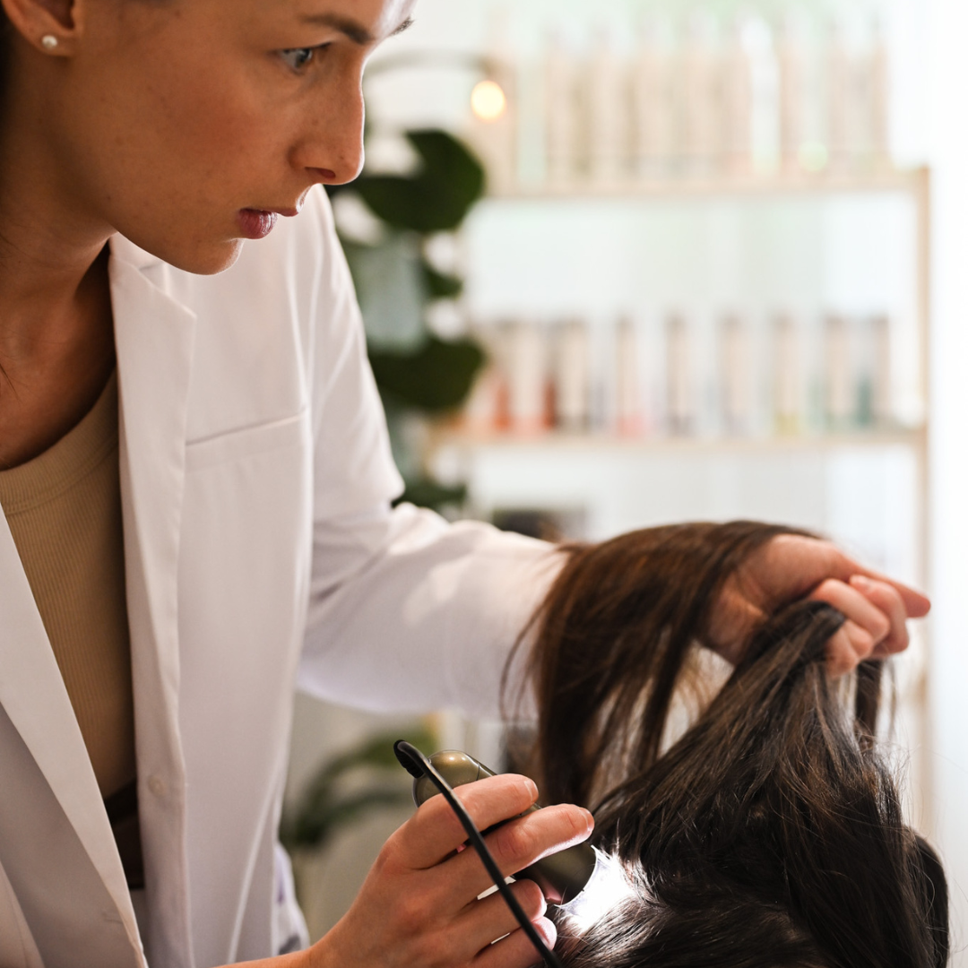 Une analyse personnalisée et des conseils adaptés peuvent faire toute la différence pour retrouver un cuir chevelu sain et des cheveux en pleine santé, ainsi que vous offrir une compréhension approfondie et éclairée de l’état de votre cuir chevelu.