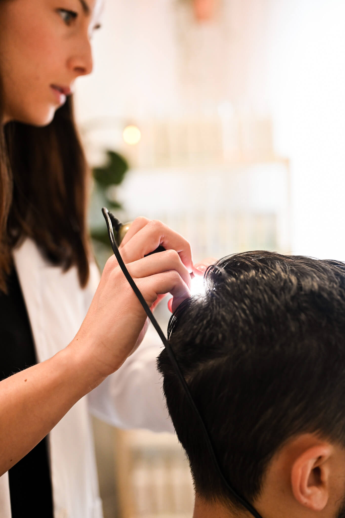L’analyse capillaire se définit en fait comme une évaluation approfondie de votre santé capillaire, incluant la condition de vos cheveux et du cuir chevelu. À l’aide d’une micro-caméra et de techniques adaptées, nos spécialistes en santé capillaire prennent le temps de réaliser un examen complet et approfondi, pour un maximum de précision.